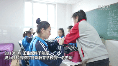 王雅妮,是內蒙古自治區呼和浩特市特殊教育學校的教師。2014年春節前夕,正在內蒙古考察的習近平總書記來到呼和浩特市兒童福利院。見到小雅妮,總書記笑容可掬地向她學手語,鼓勵她好好學習、學業有成。