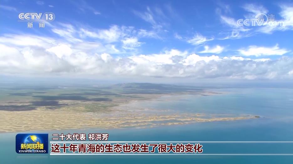 在青海展區,祁洪芳代表在一幅照片前久久不願離開,這幅照片上是她工作了30年的地方——青海湖。