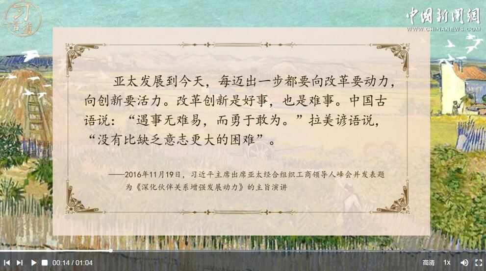 拉美諺語“沒有比缺乏意志更大的困難”,與中國古語“遇事無難易,而勇于敢為”,都強調了意志與決心的重要性。2016年11月19日,習近平主席在秘魯利馬出席亞太經合組織工商領導人峰會上做主旨演講時,便提及這句諺語。此處引用有何深意?看動畫,漲知識。
