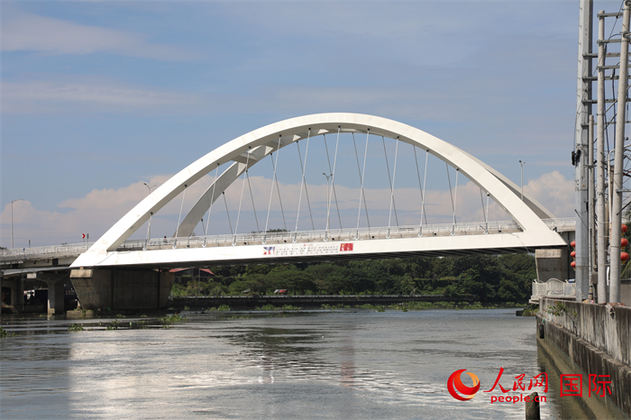 由中國政府援建的菲律賓比農多-王城大橋橫跨馬尼拉城區的帕西格河,連接著兩岸的歷史文化街區。圖為2022年10月中旬拍攝的比農多-王城大橋。人民網記者 趙益普攝