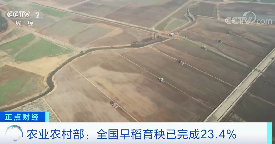 農業農村部最新農情調度顯示,目前全國早稻育秧已完成23.4%,進度同比快0.8個百分點,栽插已完成3.2%。