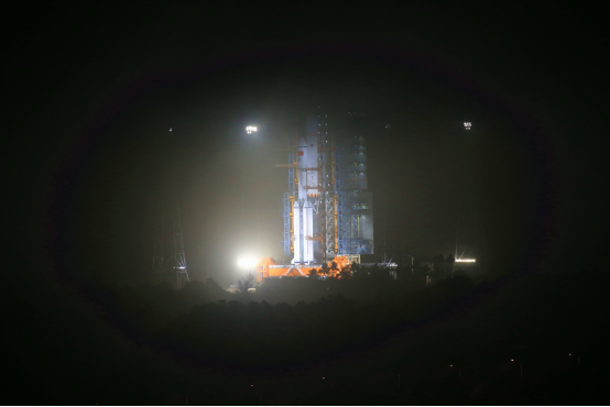 夜幕中,發射塔架格外明亮,塔架“懷抱”中,長徵七號火箭劍指蒼穹,天舟六號貨運飛船已經進入發射倒計時。