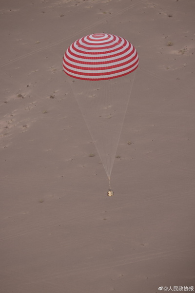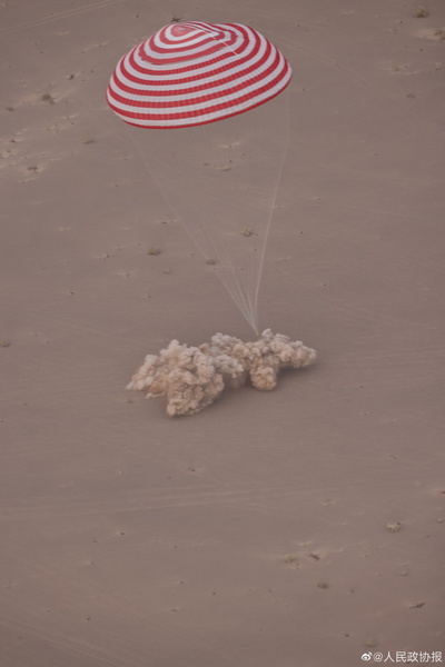 神舟十五號載人飛船返回艙在東風著陸場成功著陸
