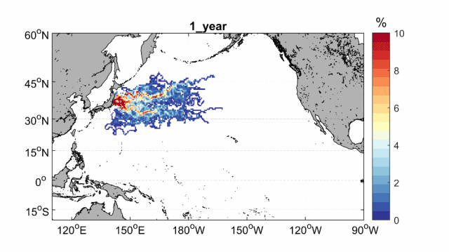 福島核污染水排海,會有什麼後果?先來看兩家專業機構基于洋流的預測圖: