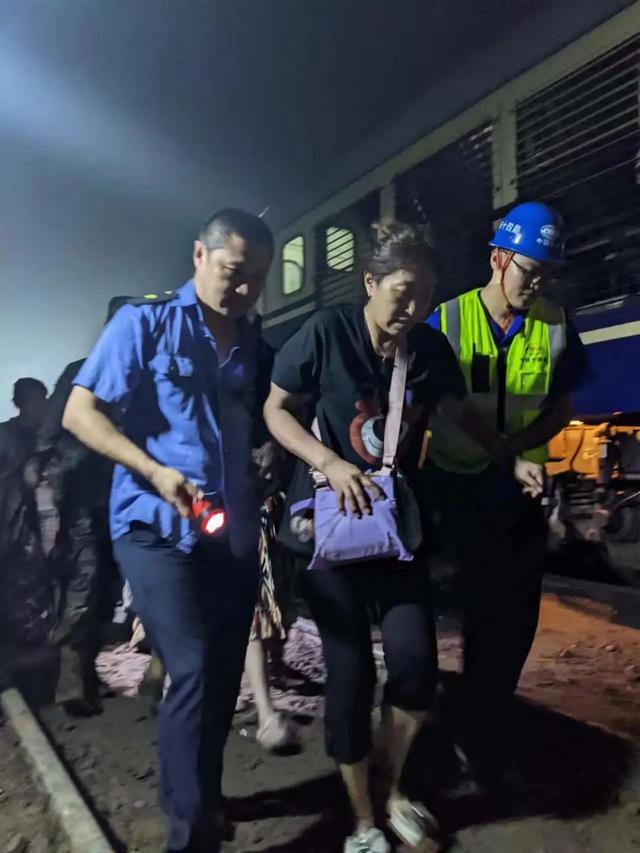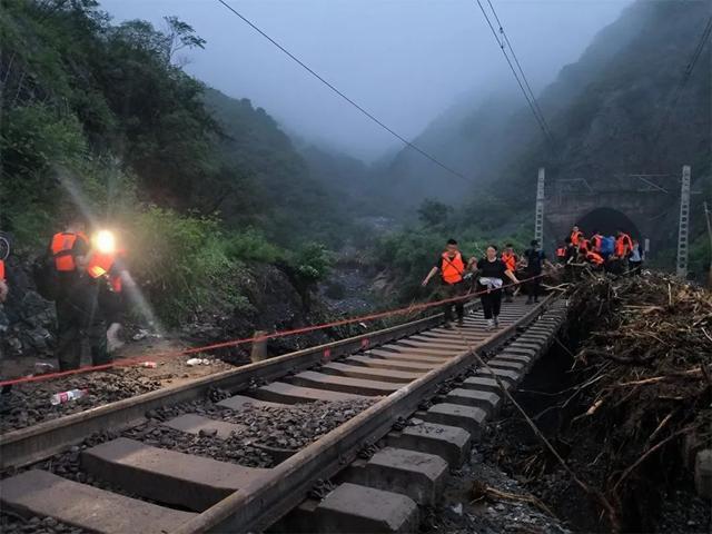 8月2日19時許,在鐵路工作人員和武警戰士的護送和接應下,Z180次列車第二批約200名旅客從安家莊平安到達斜河澗站,隨後乘坐救援列車前往北京豐臺站。