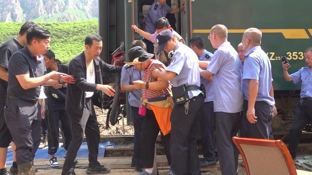 “大媽您慢點!”隨著第一位旅客邁出車門,四只有力的大手緊握梯子,五六雙胳膊伸向上方,將她穩穩地托到了地面。