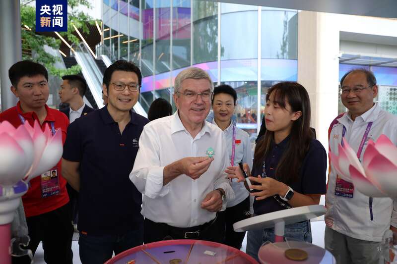 巴赫用他自己的一枚奧運五環徽章,交換了一枚杭州亞運吉祥物“蓮蓮”的徽章。他說:“我祝杭州亞運所有運動員好運‘蓮蓮’,享受在徽章交換中心交換彼此文化徽章的快樂。”