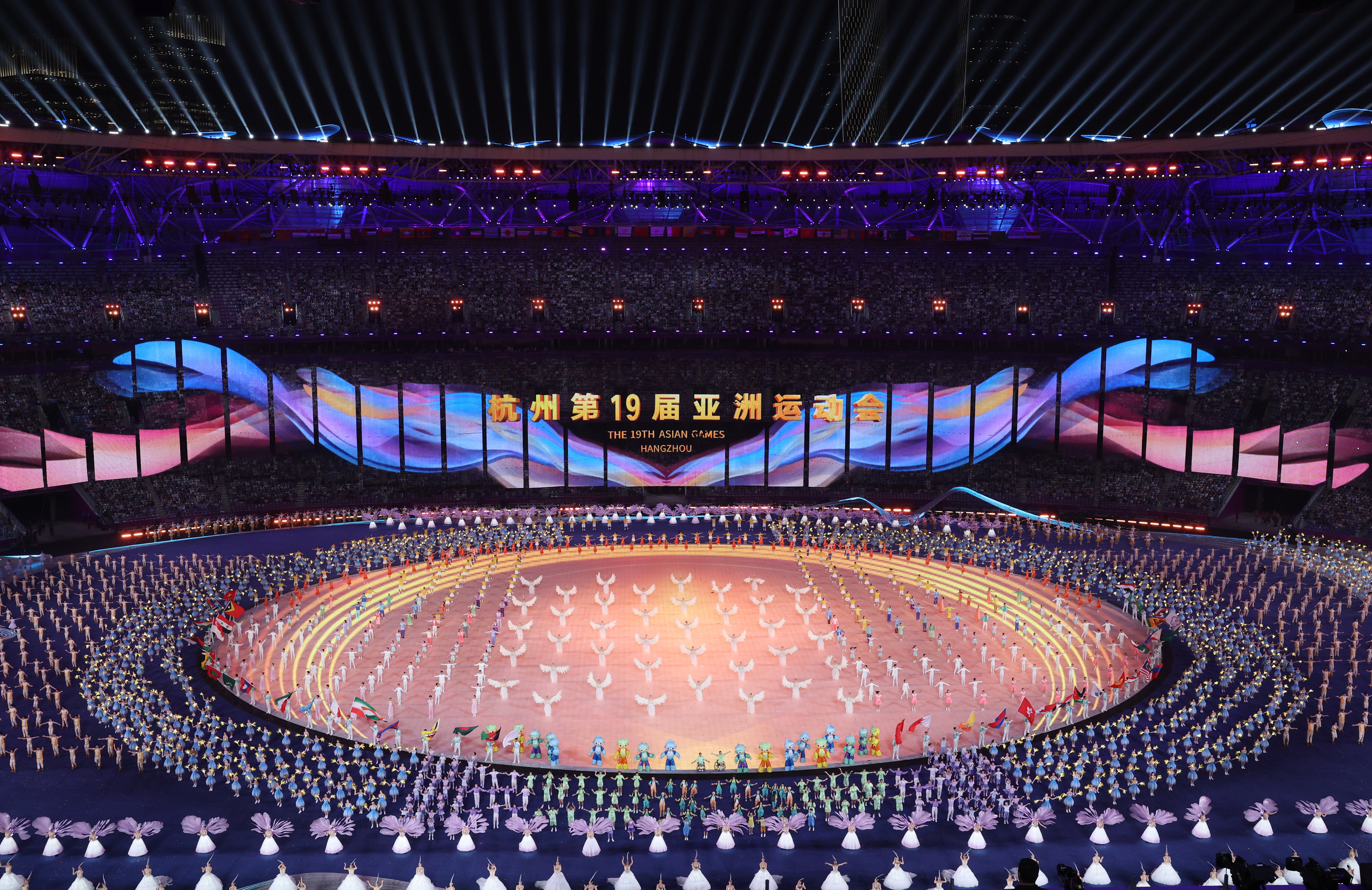 一場盛大表演令觀眾們驚嘆不已。開幕式以《潮起亞細亞》為名,向這座城市的自然景觀和時代變遷致敬。開幕式融合了3D動畫、帶有文化元素的增強現實等尖端技術,展示了中國豐富的文化遺產。