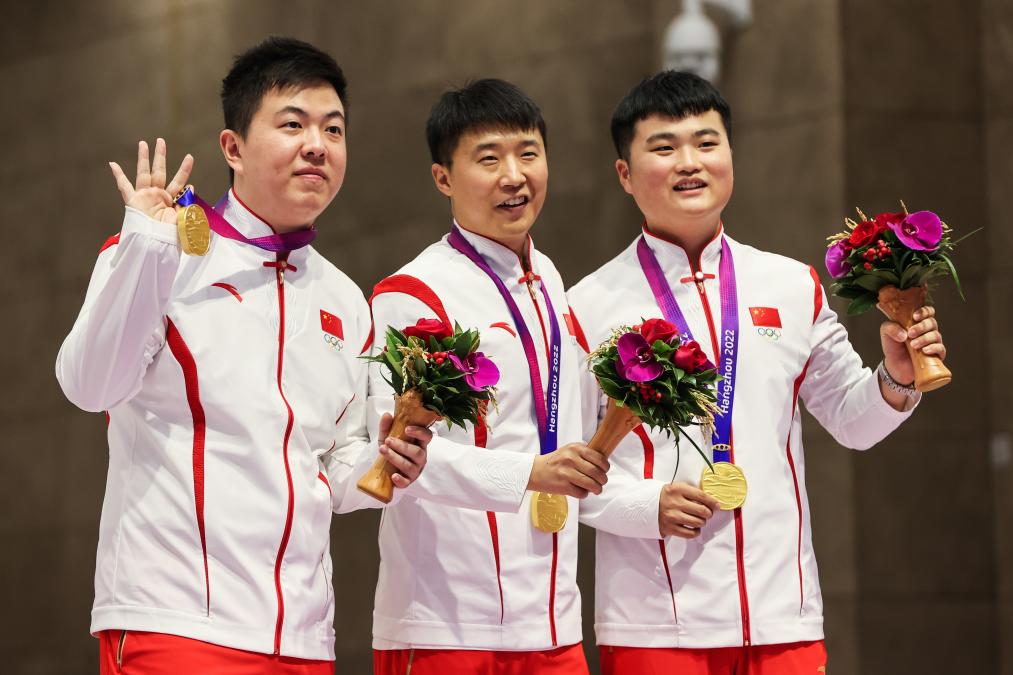 射擊賽場成為當天“最靚的舞臺”,先是印度隊在男子10米氣步槍團體賽中以1893.7環的成績打破世界紀錄,摘得金牌,這也是本屆亞運會上創造的首個世界紀錄;隨後,中國隊的18歲小將盛李豪在該項目的個人賽中以253.3環的成績刷新世界紀錄並奪冠。緊接著的男子25米手槍速射爭奪中,王鑫傑、劉楊攀、李越宏組成的中國隊以1765環的破世界紀錄成績奪得團體冠軍,老將李越宏還摘得該項目的個人金牌。