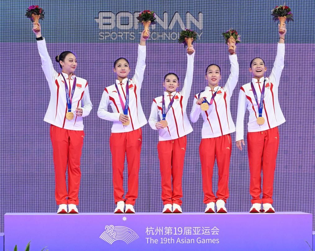 體操賽場決出女子團體金牌,由張欣怡、左彤、章瑾、虞琳敏、唐茜靖組成的中國隊雖然不是最強陣容,但仍表現出高人一籌的實力,以161.896分的成績獲得該項目的亞運會13連冠。