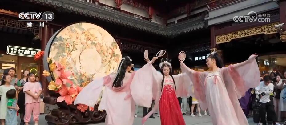 在上海豫園,圓月、花朵造型,結合多彩的燈光效果,打造秋月古風浪漫場景,一場“仲秋月神遊”活動吸引了不少市民遊客共享中國文化之美。古風演出、荷燈祈願、吟詩互動、集章打卡,多元活動打造消費新場景、吸引新客群。