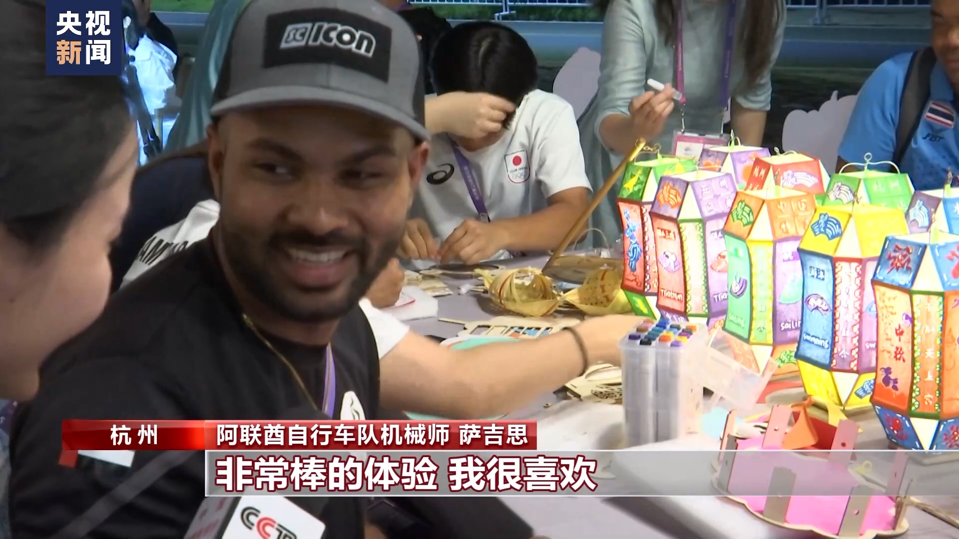 阿聯酋自行車隊機械師 薩吉思:在阿聯酋,我們沒有這樣的工藝品,但是在斯里蘭卡有類似的工藝。我們在一些特別的場合也會用上花燈,主要是以竹子為原材料。這個燈的制作有很多小細節,需要更加專心、花費更多時間,我剛開始以為很難全部做完,做著做著感覺很有意思,就想做更多,非常不錯。