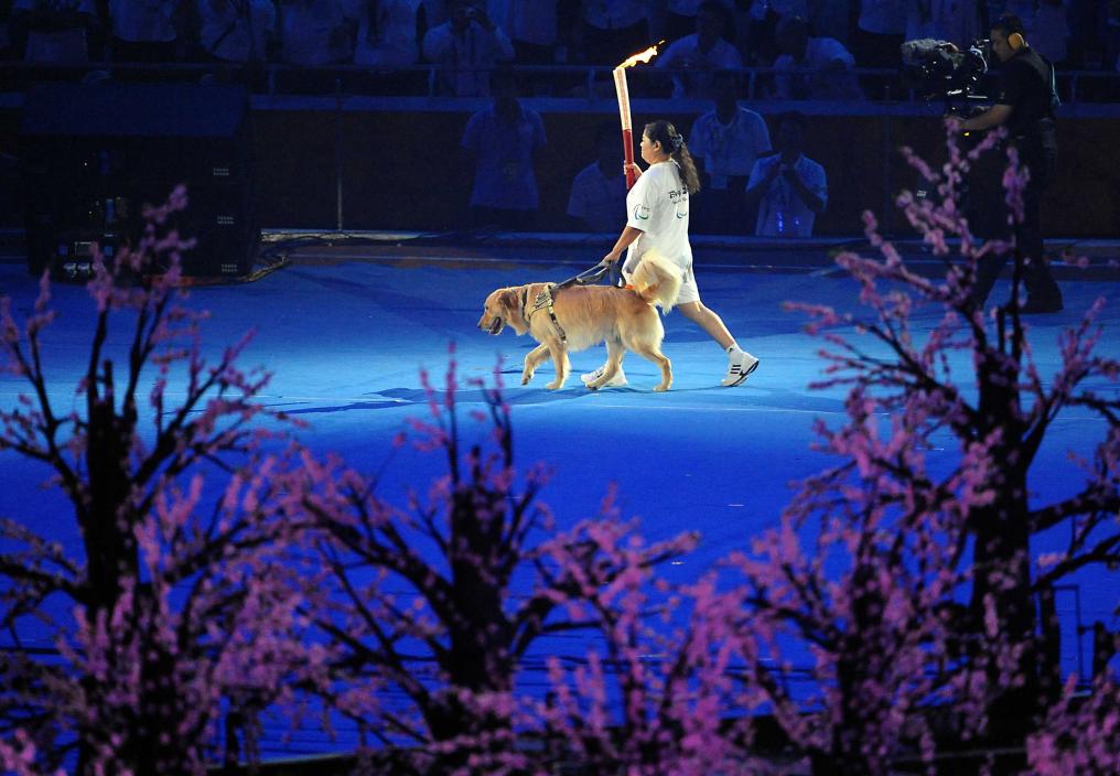 2008年9月6日,北京2008年殘奧會開幕式在國家體育場隆重舉行,火炬手平亞麗在進行火炬傳遞。新華社記者王頌攝