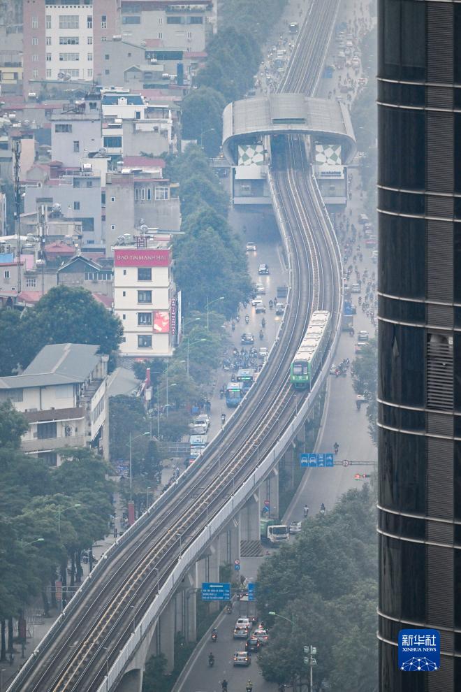 河內吉靈-河東線輕軌由中國中鐵六局集團有限公司承建,是中越兩國共建“一帶一路”的標志性項目。這條越南首條城市輕軌總長約13公里,自2021年11月投入運行以來,大大節省了當地居民的出行時間,成為了河內新地標之一。
