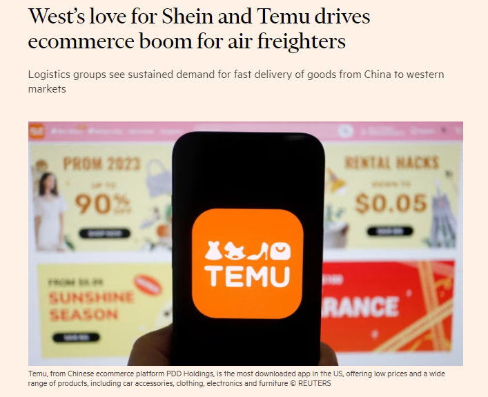 據英國《金融時報》報道,西方國家對 Temu 和 Shein 等中國在線品牌銷售的快時尚和電子商務商品的需求不斷增長,美國和歐洲的消費者開始從中國電商平臺購買更多商品,部分訂單在一周內送達。