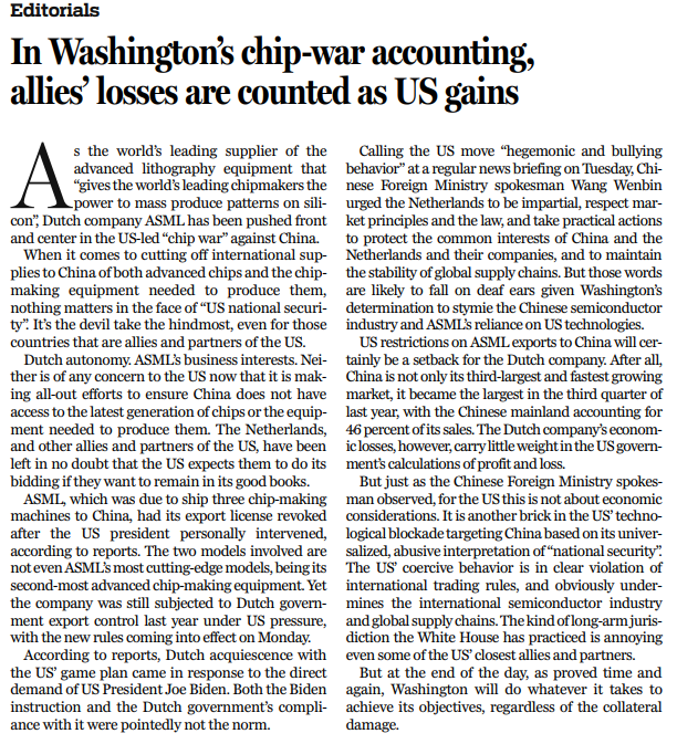 顯然,荷蘭的做法是在回應美國總統拜登的直接授意,而拜登的授意及荷蘭政府的“配合”都不符合正常的市場規則。