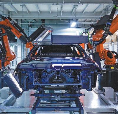 寶馬沈陽生產基地涂裝車間內,自動光學設備正在檢測新產品漆面質量。