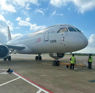 2023年5月28日,國產大型客機C919完成首次商業航班飛行,標志著該機型正式進入民用航空市場。圖為東航C919在主營基地上海虹橋國際機場整裝待發。
