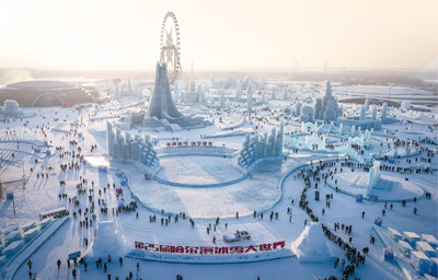 黑龍江哈爾濱冰雪大世界佔地81萬平方米,25萬立方米的冰和雪幻化成上百個精美景觀。