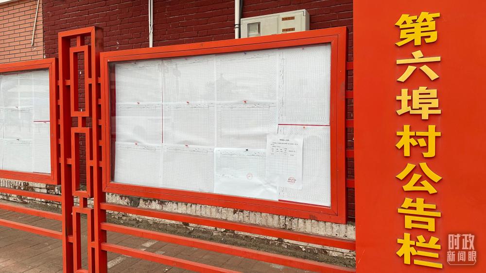△第六埠村公告欄里張貼著“天津市2023年蓄滯洪區農作物、經濟林補償標準表”等。(總臺央視記者覃思拍攝)