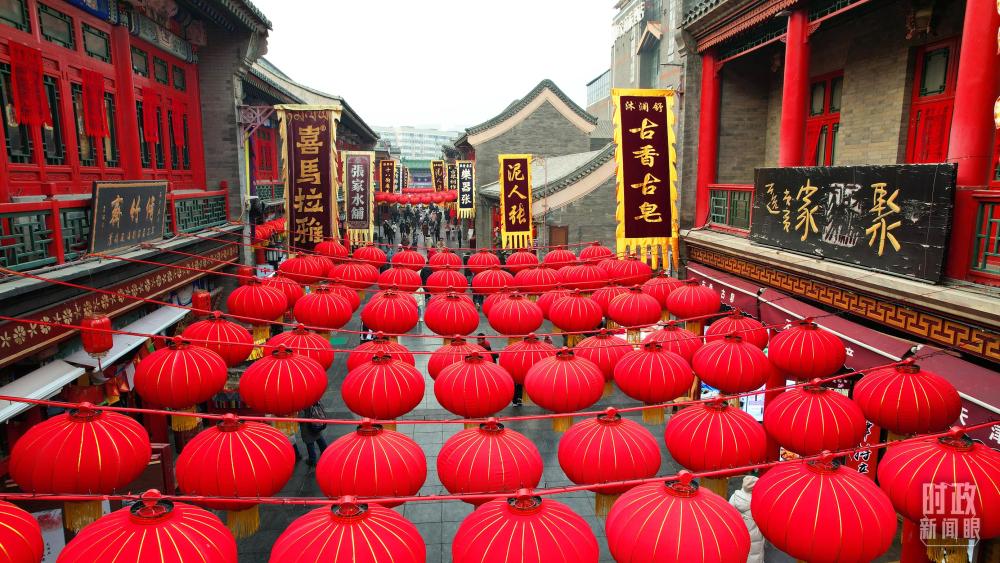 春節將近,天津古文化街挂滿紅紅的燈籠,舞龍舞獅表演走上街頭,中國味、天津味、古味、文化味、年味十足,前來採買的市民遊人絡繹不絕。