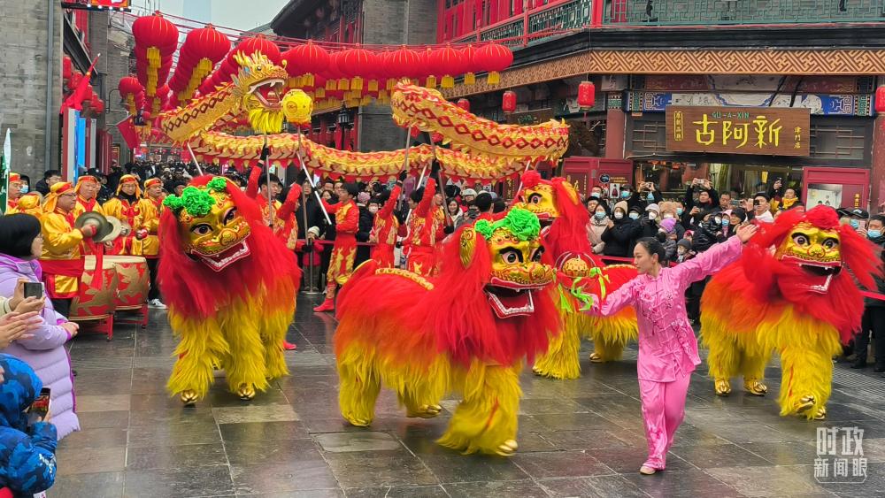 △天津古文化街上的舞龍舞獅表演。(總臺記者孫文嘯拍攝)