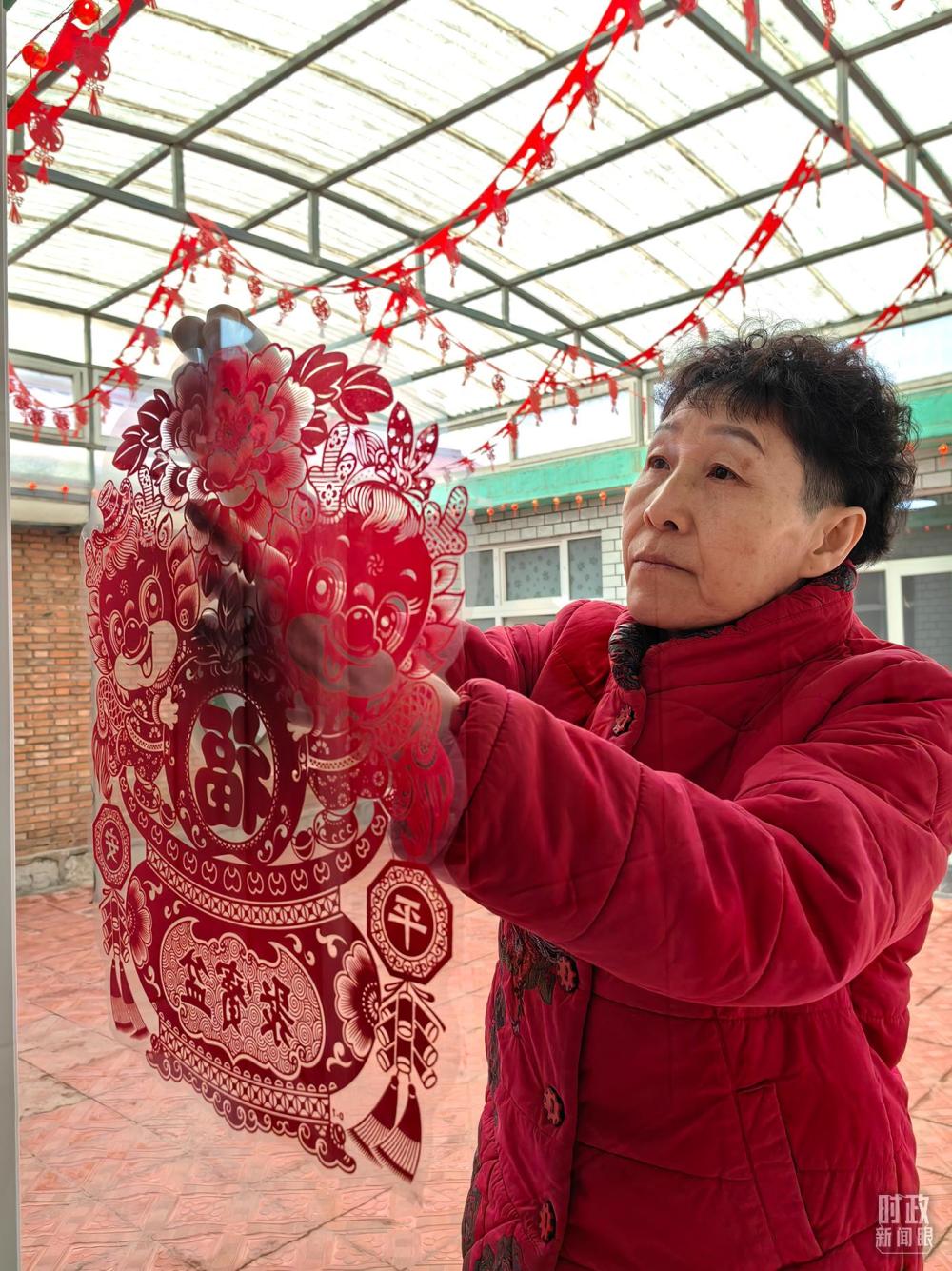 △第六埠村村民正在貼窗花。(總臺央視記者段德文拍攝)