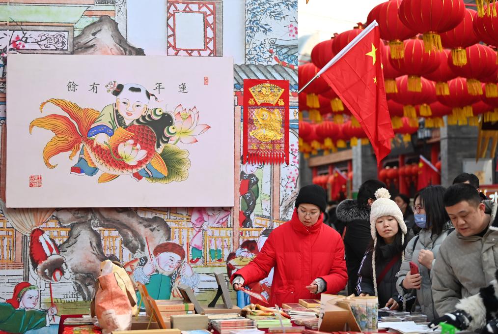 近日,在天津古文化街,遊客在選購天津楊柳青年畫。新華社記者 李然 攝