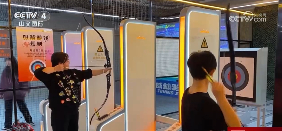 在一些商場的室內休閒運動館,大批運動愛好者在這里體驗射箭、攀岩等項目。