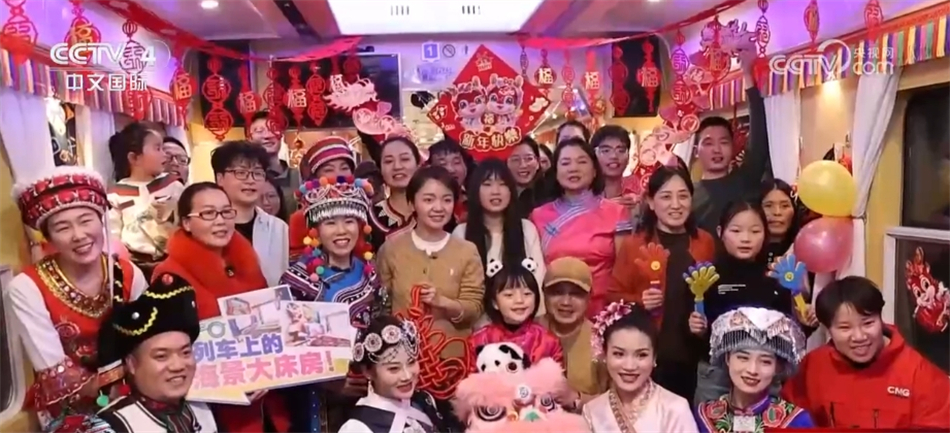 在這列昆明開往麗江的雙層列車上,來自五湖四海的旅客聚到了一起,在火車上過大年。