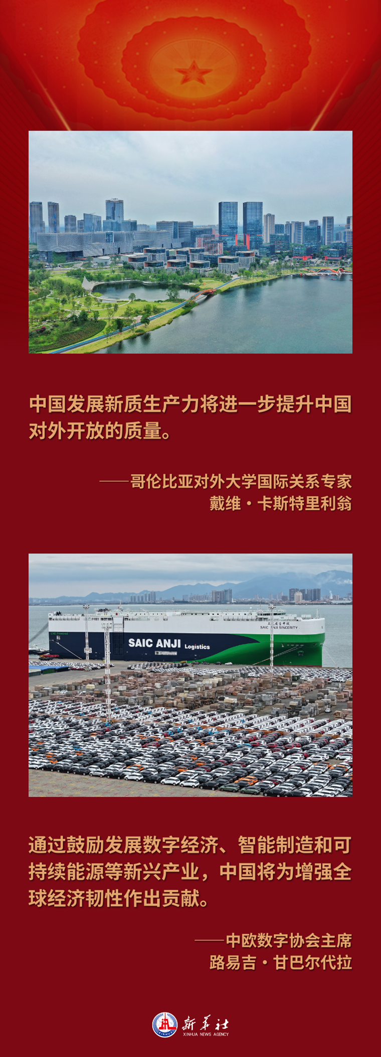 海外人士對習近平總書記關于發展新質生產力的重要論述給予高度評價,認為習近平總書記的論述為繼續鞏固和增強經濟回升向好的態勢注入動力,為中國經濟高質量發展、推進中國式現代化建設提供科學指引,相信中國發展新質生產力將不斷取得成果,向“新”而行的中國經濟也將為全球經濟發展增加新活力、帶來新機遇,助推建設和平發展、共同繁榮的美好世界。