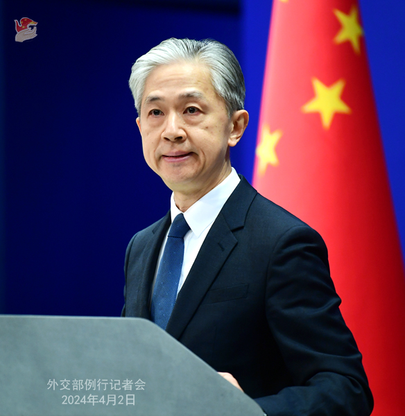 中新網北京4月2日電 (郭超凱 謝雁冰)中國外交部發言人汪文斌4月2日主持例行記者會。