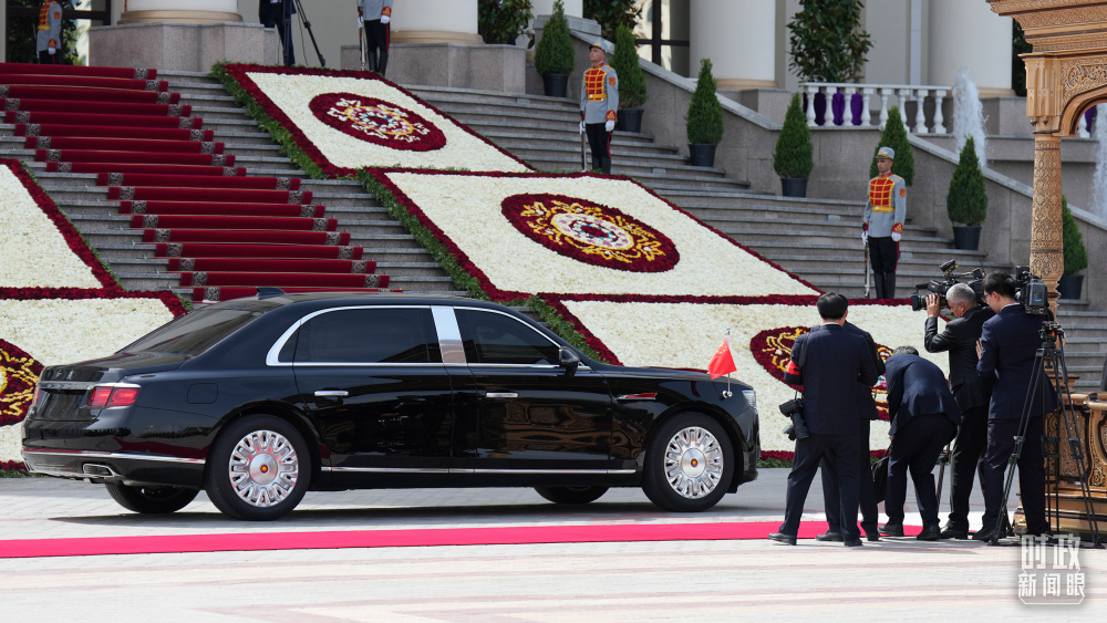 △習主席乘坐的紅旗車抵達塔總統府。(總臺記者李晉拍攝)