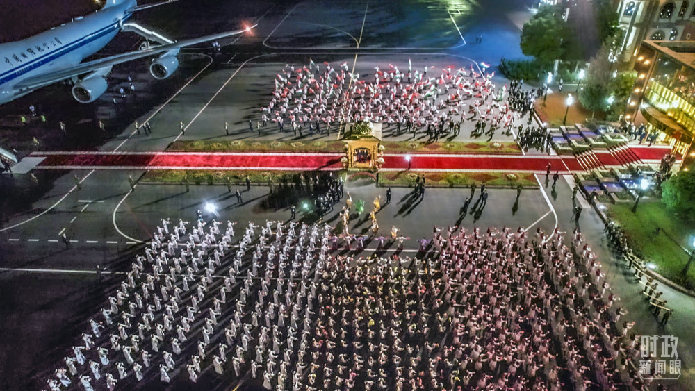 △塔方在機場舉行的盛大迎賓儀式。(總臺央視記者邢彬)