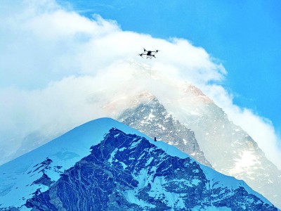 中國民用無人機完成全球首次珠峰6000米海拔物資運輸。新華社發