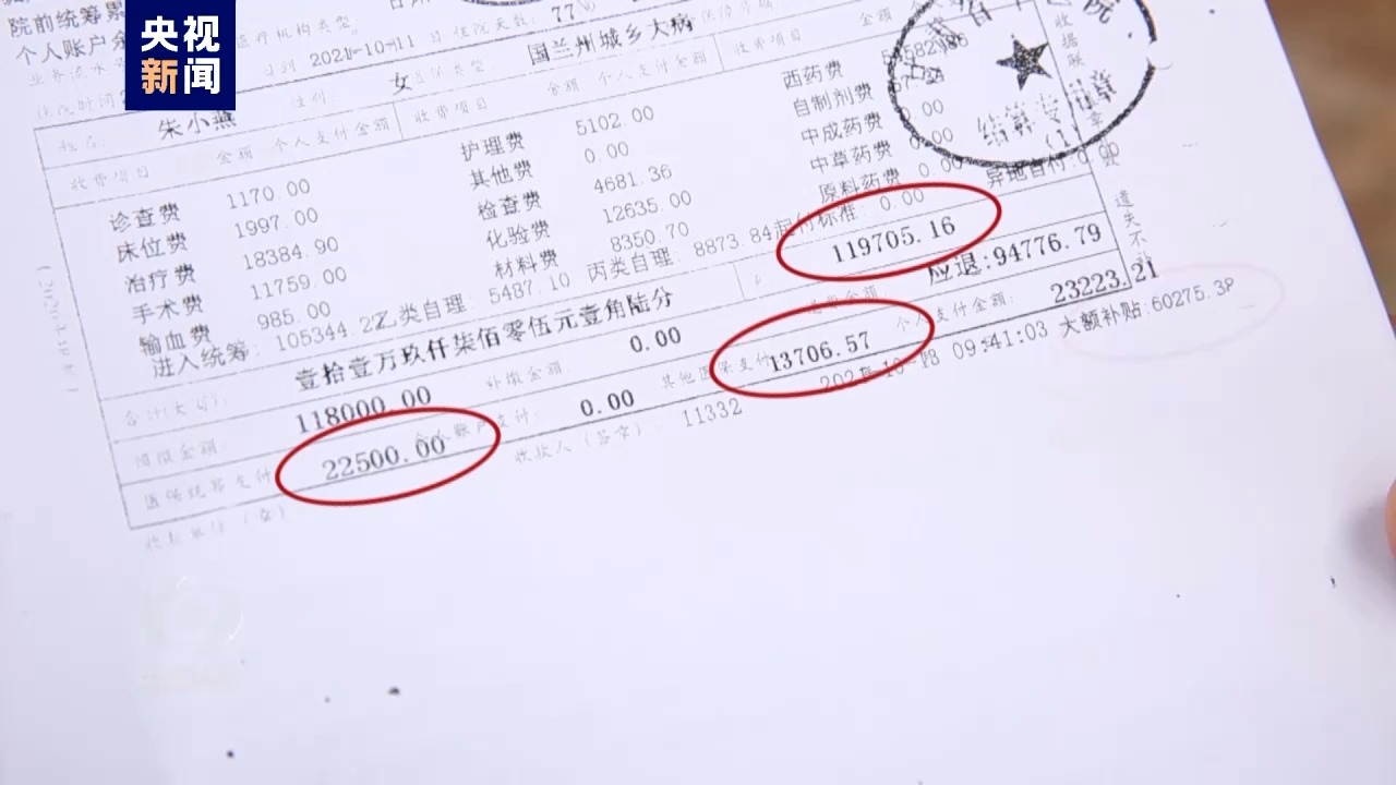 甘肅蘭州沈家嶺村村民朱小燕一家為低保戶。八年前,朱小燕查出結腸腫瘤,起初,面對醫療花費,一家人十分擔心。但讓朱小燕一家沒有想到的是,幾年間,她自費的比例在不斷降低。2021年的一次手術總共花費119705元,經過基本醫保、大病保險和醫療救助報銷後,朱小燕自費為23223元,自費比例為19.4%。而且,民政部門針對她家庭綜合情況,給予了2萬多元臨時救助,朱小燕花費了不到3000元。