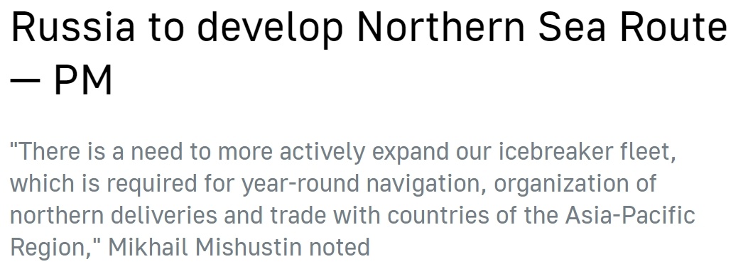 俄總理米舒斯京曾在政府會議上強調,跨經北極的北方海路對于向俄北部運送物資、向世界市場輸送金屬和能源、進行亞洲和歐洲之間的過境運輸來說都非常重要,尤其是在西方制裁之下更是如此。因此,“有必要更積極地擴大俄羅斯的破冰船隊”。