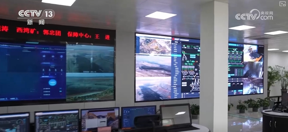 採煤場智能的背後,靠的是“智慧大腦”來統一調度。生產指揮中心的3塊大屏幕上,實時顯示著採、裝、運、卸、排各個環節的畫面,只需要兩名調度員,就能指揮全流程作業。