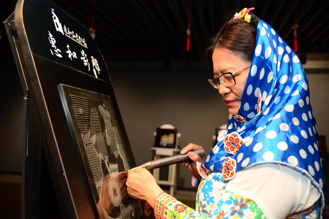 江愛紅在影雕工作室忙碌著