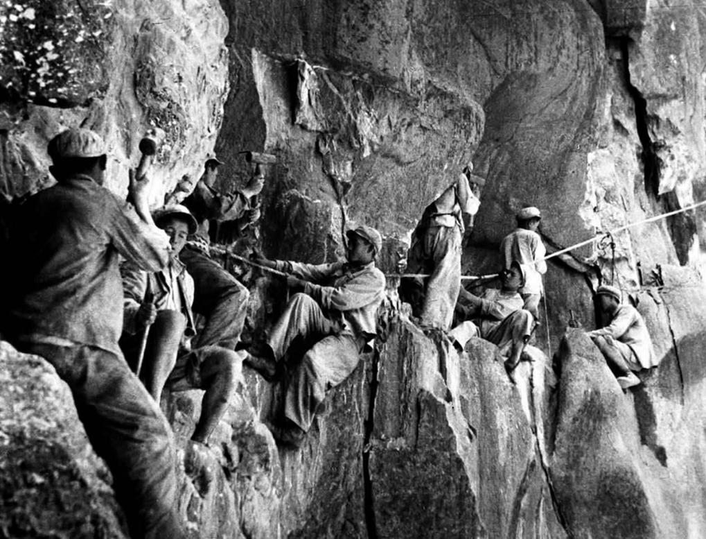 凝固下千千萬萬交通建設者峭壁開路的壯志豪情