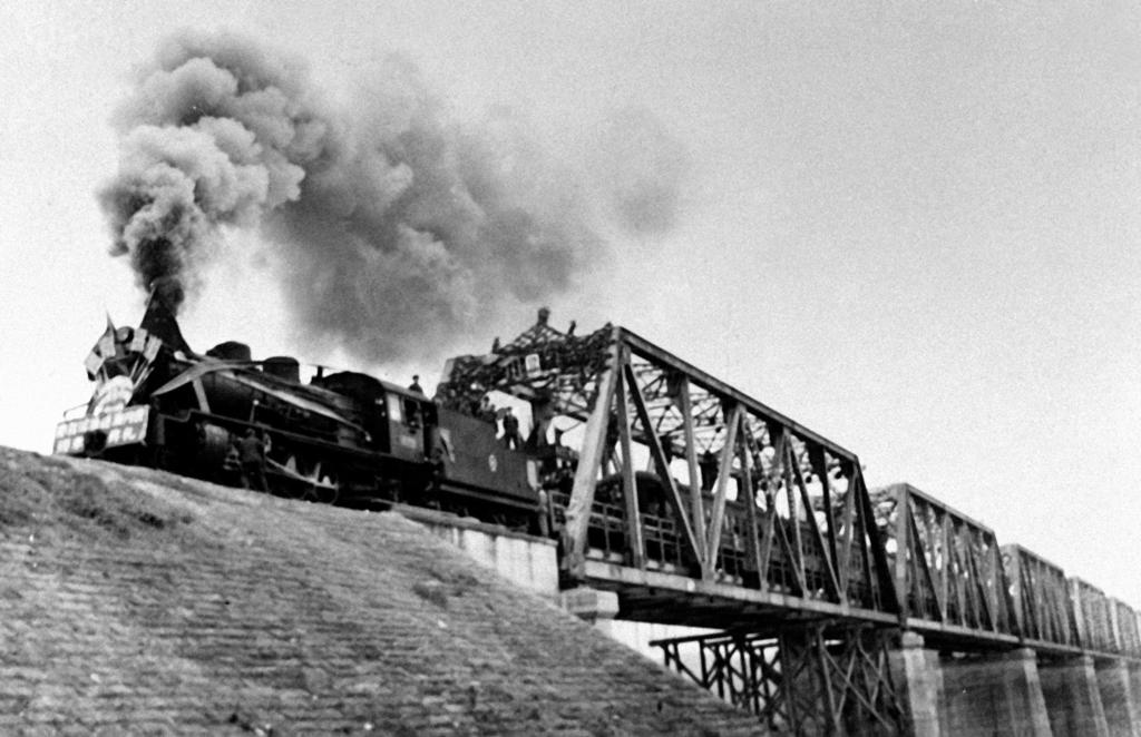 1951年12月,成渝鐵路沱江大橋建成通車後,第一列火車通過大橋。新華社發