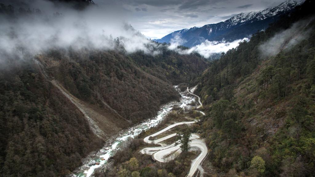 2017年3月30日,西藏墨脫公路上空雲霧繚繞。2013年,墨脫公路正式通車,實現我國“縣縣通公路”。新華社記者 普布扎西 攝