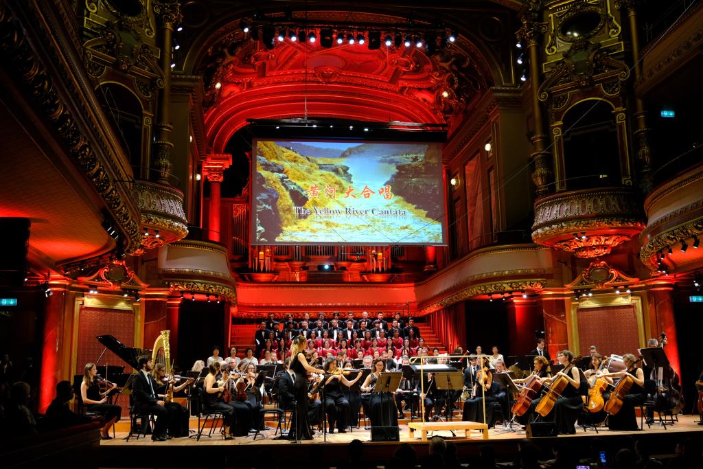 中華人民共和國成立75周年之際,由八個樂章組成的《黃河大合唱》在瑞士日內瓦維多利亞音樂廳唱響。全曲演出時長40多分鐘,現場觀眾對每一樂章都報以熱烈掌聲。瑞士記者俱樂部前主席居伊·梅唐說,這場令人震撼的演出讓他深深感受到中國人民自強不息的精神。瑞士觀眾卡琳·勒雷舍說:“《黃河大合唱》唱的是愛國情懷。中國人民熱愛自己的國家,我們也如此,我深受感動。祝福中國!”