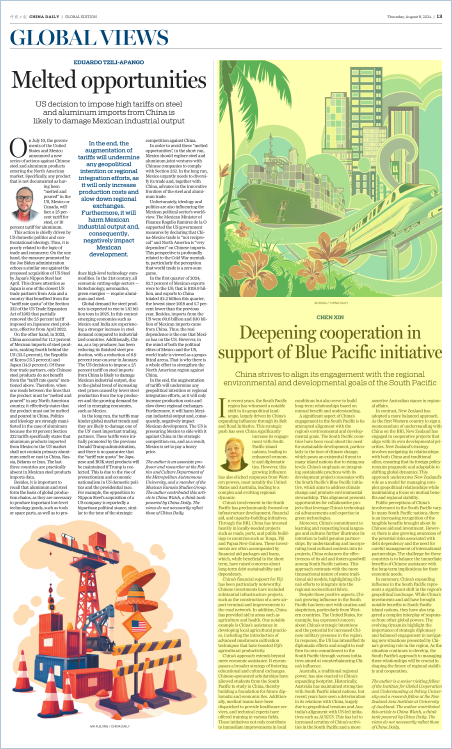 本文原文發表在中國日報國際版,原標題為 "Deepening cooperation in support of Blue Pacific initiative"