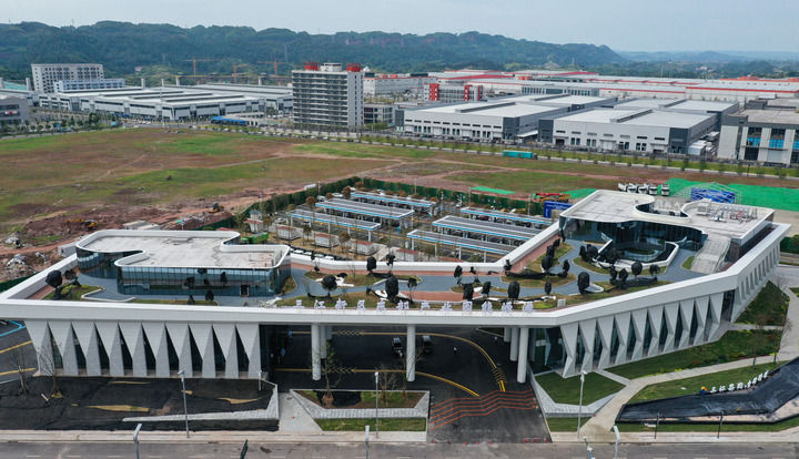 這是2022年7月20日在四川省宜賓市三江新區拍攝的東部產業園能源港(無人機照片)。新華社記者 王曦 攝