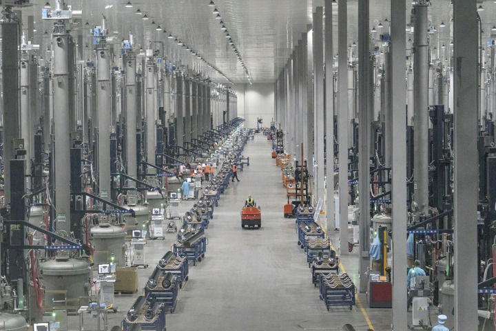 這是四川省樂山市京運通新材料科技有限公司的單晶硅棒生產車間(2023年3月16日攝)。新華社記者 唐文豪 攝