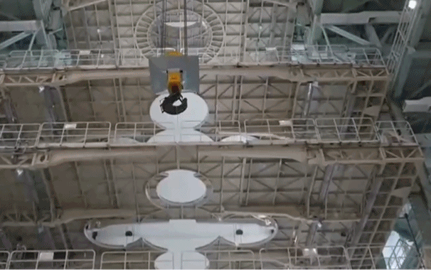 這個大門的設計也是當初建造垂直總裝測試廠房的難題之一。科研人員們刻苦攻關,最後巧妙解決了巨型部件安裝以及大風沙環境的密閉、抗風等一係列技術難題。