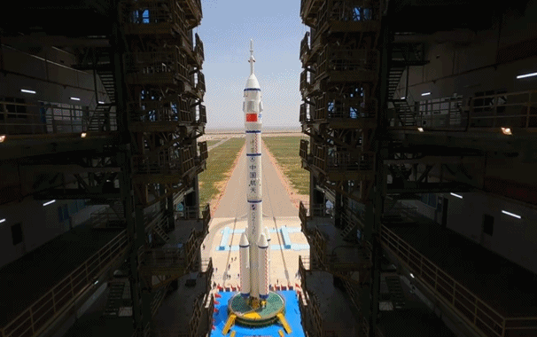 總臺央視記者 劉潔:在酒泉衛星發射中心,一座藍白相間的高大建築,就是垂直總裝測試廠房。它是目前我國唯一能夠進行載人火箭組裝的廠房。這座廠房總高90多米,由東、西兩個總裝測試大廳組成,可以同時進行兩發火箭的總裝和測試。