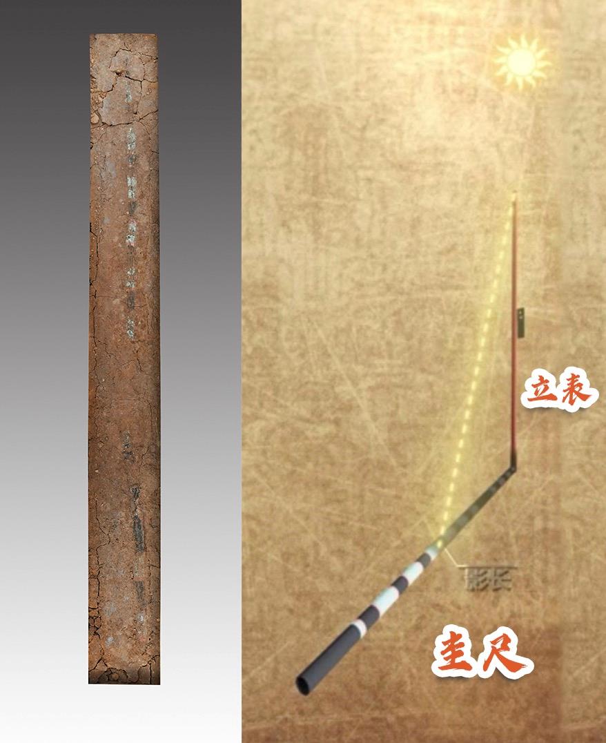 △左圖為圭尺,右圖為圭表成組使用示意圖