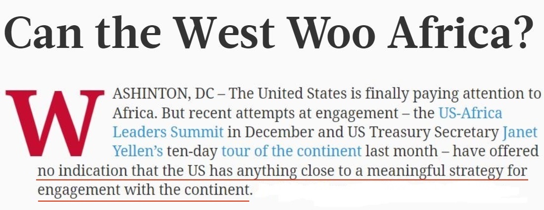 △世界報業辛迪加網站:雖然非洲以其快速增長的人口、豐富的資源以及龐大的聯合國會員國席位數目重新受到了美國的關注,但沒有任何跡象表明美國已制定出與非洲加強接觸的有意義的戰略。